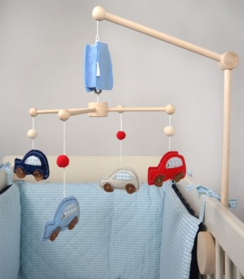 Karuzela "Auto" została wykonana z wysokogatunkowego drewna. Posiada obrotową pozytywkę ukrytą pod kolorowym "kapturkiem". Po nakręceniu zabawki delikatnie się obracają.