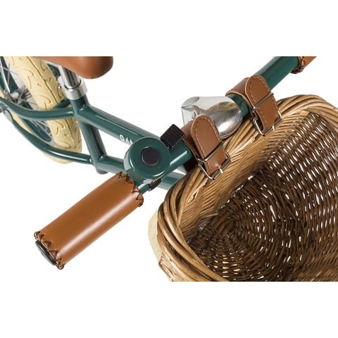 Odpowiednio wyważony środek ciężkości gwarantuje stabilność i łatwość utrzymana równowagi. Rączki kierownicy oraz siodełko wykonane są ze skóry ekologicznej, którą łatwo utrzymać w czystości. Rowerek wyposażony jest w uroczy dzwonek oraz stylowy kosz wiklinowy, w którym zmieszczą się najpotrzebniejsze skarby Twojego malucha.