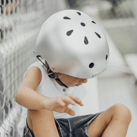 Regulowany kask rowerowy dla dzieci Banwood zabezpiecza malucha podczas jazdy na rowerze i innych aktywności fizycznych.