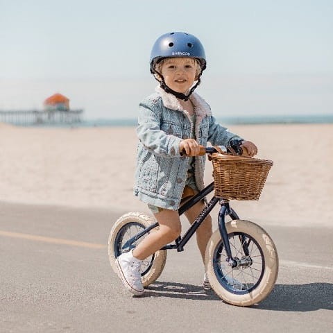 Regulowany kask rowerowy dla dzieci Banwood zabezpiecza malucha podczas jazdy na rowerze i innych aktywności fizycznych.