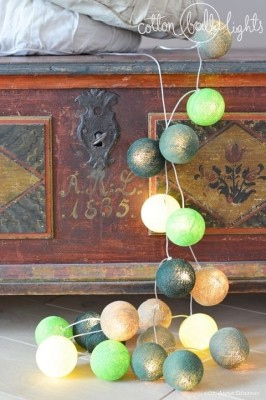 Lampki cotton balls w odcieniach zieleni i ciepłego beżu. Wyczarują ciepły klimat w pokoju dziecka i zapewnią stonowane światło. Będą oryginalną ozdobą na łóżeczko czy szafę. Dostępne są w różnych długościach - 10, 20, 35 i 50 kul. Dostępne w linii. Odstęp między kulkami wynosi od 12 do 14 cm.