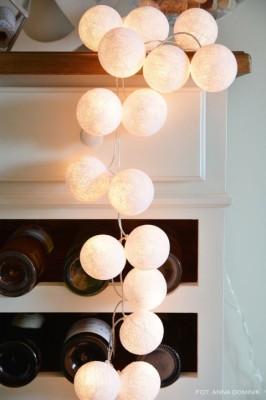 Zestaw cotton balls w naturalnym białym odcieniu. Komplet stanowią kule wyłącznie w białym kolorze, które po włączeniu dają bardzo ciepłe, jasne światło. Uniwersalna ozdoba do każdego pomieszczenia. Proponujemy kule w zestawach od 10 do 50 kul, które mogą być ułożone w linii prostej. Lampki LED