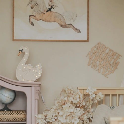 Ręcznie robiona drewniana lampka Łabędź roomGAGA® będzie piękną ozdobą pokoju dziecka. Umieść drewnianą lampę roomGAGA® na stoliku nocnym, półce, biurku lub powieś na ścianie, aby zapewnić ciepłe i przytulne oświetlenie w pokoju dziecka. Może ona służyć nie tylko jako element dekoracji, ale przede wszystkim będzie wiernym kompanem i przyjacielem podczas zabaw, nauki, czytania czy usypiania.