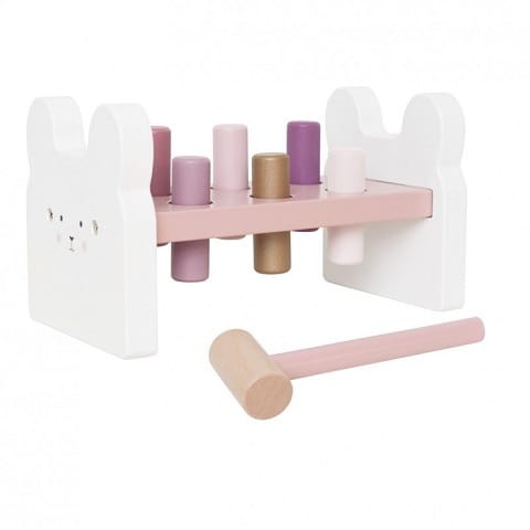 Wbijanka, drewniana przebijanka królik marki Jabadabado - to idealny pomysł dla aktywnego malucha, by bezkarnie stukać - ćwicząc zręczność i koordynację wzrokowo-ruchową - można w nią tłuc specjalnym młotkiem ile dusza zapragnie! Piękne, urocze pastelowe kolory i estetyczne wykonanie gwarantują uśmiech na twarzy malucha.