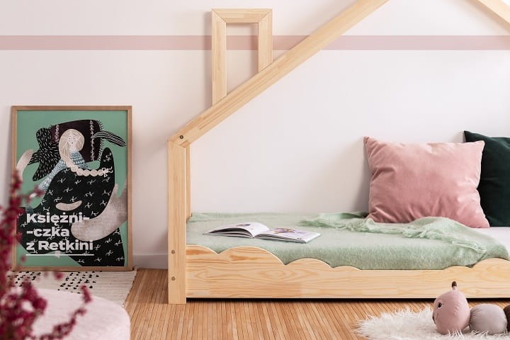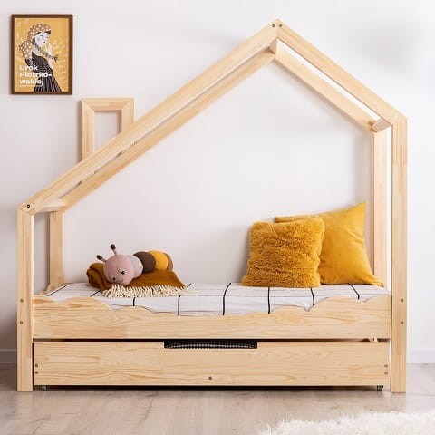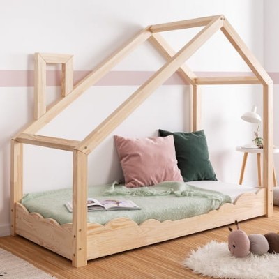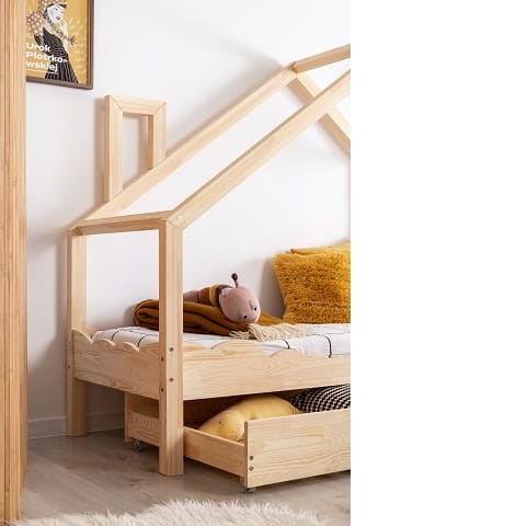 O takim łóżeczku marzą wszystkie dzieci. Łóżko domek w stylu skandynawskim to designerski akcent w pokoju dziecka, który zapewnia nie tylko komfortowe miejsce do wypoczynku ale jednocześnie ulubione miejsce do zabawy. Uroku dodaje drewniany komin. Łóżko domek wykonane jest z wysokiej jakości drewna sosnowego certyfikowanego klasy I (FSC) - Forest Stewardship Council. Łóżko jest solidne, o mocnej i sztywnej konstrukcji. Drewno użyte do produkcji łóżeczka nie jest lakierowane ani malowane a jedynie szczotkowane i szlifowane. Kolor: naturalne drewno. Polska produkcja.