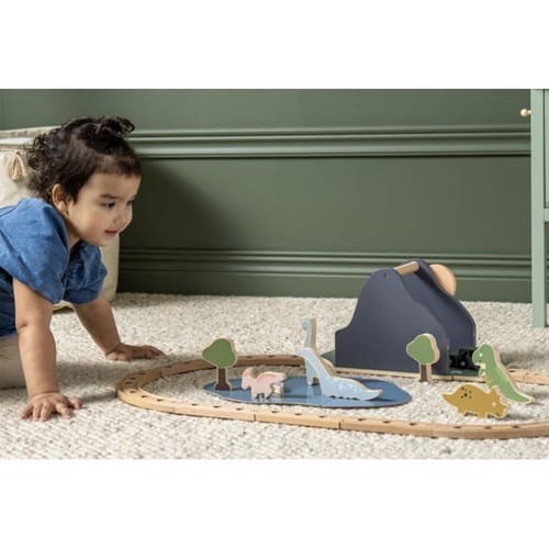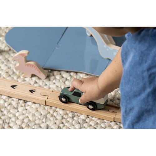 Ten znakomity tor dinozaury zapewni wielogodzinną, emocjonującą zabawę Twojemu maluchowi, idealnie pasuje również do pozostałych zabawek z marki Jabadabado takich jak: tor wyścigowy, stacja benzynowa, tory samochodowe, kolejka drewniana oraz jest kompatybilny z innymi znanymi markami.