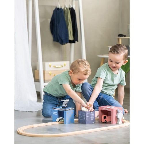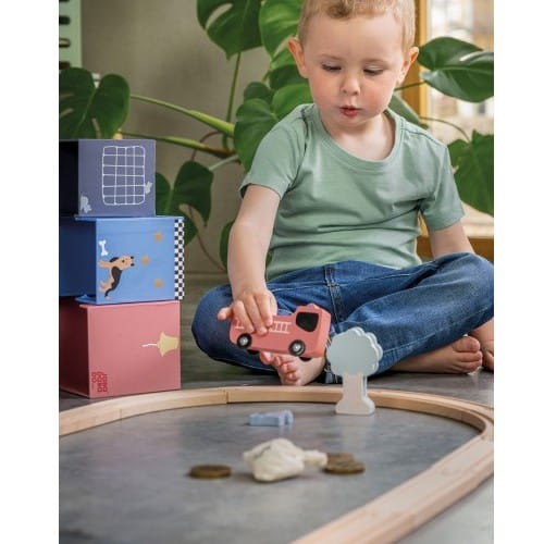 Ten zestaw jest kompatybilny z pozostałymi zabawkami szwedzkiej marki Jabadabado takimi jak: kolejka drewniana, tory samochodowy , tor wyścigowy, stację pojazdów, garaże - co pozwoli Twojemu dziecku stworzyć swój własny, kolorowy świat Jabadabado. Produkt zapakowany w śliczne wiaderko z wygodnymi do przenoszenia uchwytami.