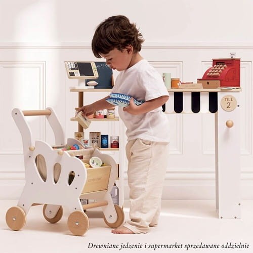 Drewniany wózek na zakupy, zabawka dla dzieci, zabawa w sklep, Le Toy Van