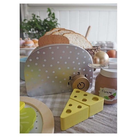 Śniadanie to najważniejszy posiłek dnia, z uroczym zestawem śniadaniowym skandynawskiej marki Jabadabado - może być zdrowe i smaczne. Uroczy zestaw śniadaniowy z tosterem to idealny pomysł na dziecięce akcesoria kuchenne. Idealnie sprawdzi się do odgrywania ról dorosłych, szykowania posiłków dla wszystkich lal i pluszaków. Dzieci obserwują nas podczas codziennych czynności i chcą odzwierciedlać każdy nasz ruch. Każdego dnia chcą nam towarzyszyć i pomagać w kuchni, podczas przygotowywania smacznych i zdrowych posiłków. Drewniany zestaw śniadaniowy z tosterem to niezliczone w możliwości fantastycznej zabawy zarówno dla dziewczynek, jak i dla chłopców - daj się zaskoczyć, i pozwól zaserwować sobie śniadanie do łóżka!