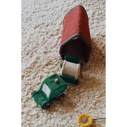 Produkt wykonany jest z wysokiej jakości bawełny, co sprawia, że jest miękki, przyjazny dla skóry i bezpieczny dla maluchów. Co więcej, dywan można łatwo prać w domowej pralce, co zapewnia wygodę użytkowania i dbałość o czystość. Do dywanu dołączono 7 bawełnianych zabawek, które wprowadzają maluchy w świat zabawy: mini stajnię, 3 mini słoneczniki, mini traktor, mini kurkę oraz mini stóg siana, tworząc idealne tło do kreatywnych przygód na farmie.