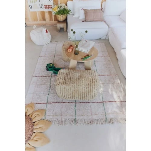 Ręcznie wykonany dywan bawełniany Kolorowe Linie z kolekcji Farm to wyjątkowy element, który doda uroku i przytulności każdemu wnętrzu. Wykonany z naturalnej bawełny, dywan ma prostokątny kształt i zdobiony jest pasami w różnych kolorach, które wprowadzają radosny, a zarazem subtelny akcent do pomieszczenia. Krótkie frędzle na brzegach dodają mu rustykalnego charakteru. Dzięki bawełnianemu materiałowi, dywan jest miękki i bezpieczny dla dzieci, a jego dużym atutem jest możliwość prania w domowej pralce, co ułatwia utrzymanie go w czystości. Dywan Kolorowe Linie to idealny wybór do pokoju dziecięcego, salonu czy innych przestrzeni, w których cenisz funkcjonalność, wygodę i stylowy design.
