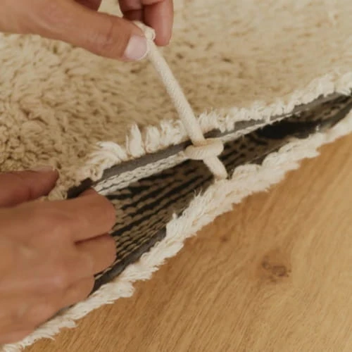 Ręczne wykonanie: Jeśli posiadasz jeden z naszych charakterystycznych dywanów do domu, wiesz, że jest to jedyny w swoim rodzaju egzemplarz. Ponieważ jest wykonany ręcznie przez indyjskich rzemieślników, a nie w wyniku masowej produkcji. Każdy produkt Lorena Canals jest starannie wykonywany ręcznie przez naszych rzemieślników w naszej własnej fabryce w Indiach przy użyciu tradycyjnych technik rzemieślniczych. Rezultatem jest dzieło sztuki z niewielkimi różnicami charakterystycznymi dla pracy rzemieślniczej. Odnajdujemy piękno w niedoskonałości.