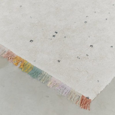 Wykończony jest krótkimi frędzlami na krawędziach w różnych kolorach wynikających z mieszanki kolorów, które ożywiają kolekcję. Dywan, który nie tylko zdobi, ale także inspiruje. Niezbędny z osobowością dla tych, którzy szukają wyjątkowych elementów wystroju.