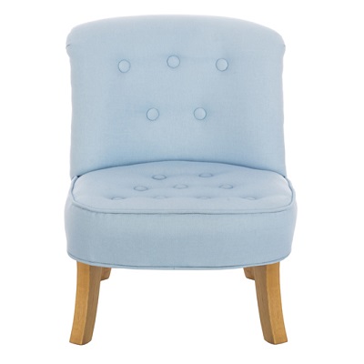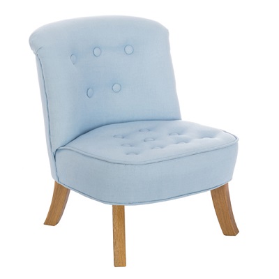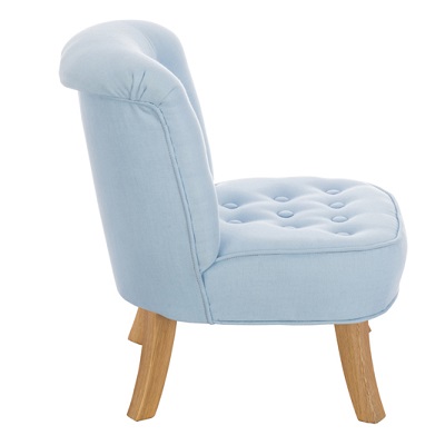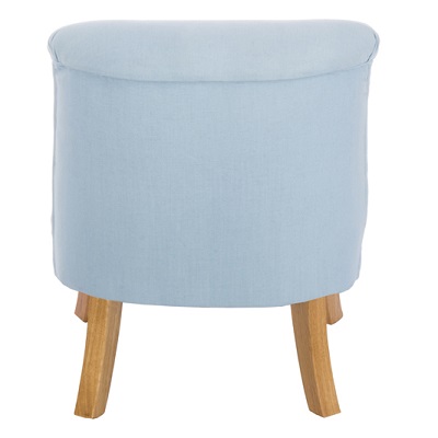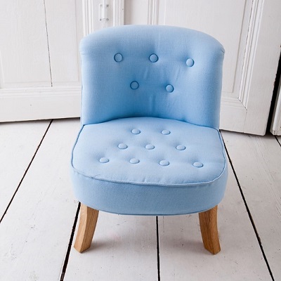 Fotelik dla dzieci w kolorze błękitnym. Materiał obicia - len polskiego pochodzenia.
