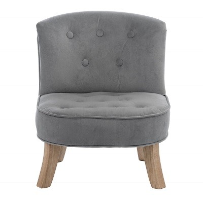 Fotelik dla dzieci w kolorze szarym z ogonkiem króliczka. Materiał - welur