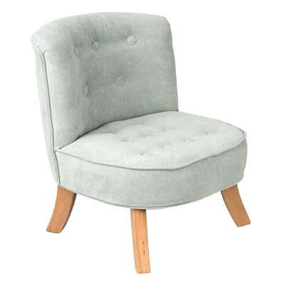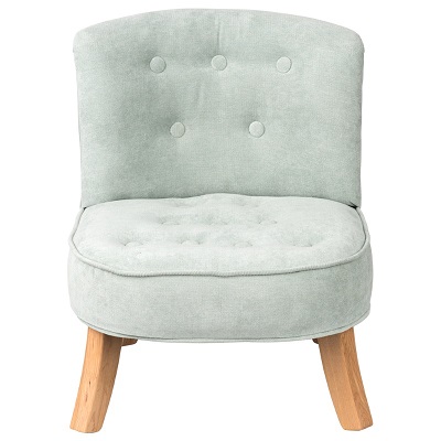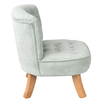 Fotelik dla dzieci w kolorze dusty brudna mięta. Materiał obicia - tkanina welurowa
