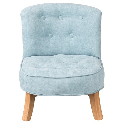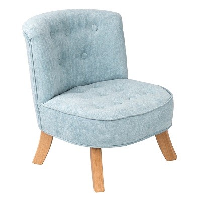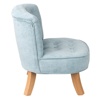 Fotelik dla dzieci w kolorze dusty brudny błękit. Materiał obicia - tkanina welurowa
