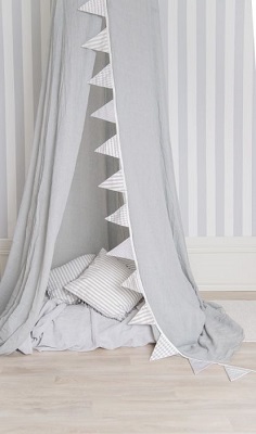 Baldachim w kolorze szarym będzie się pięknie prezentował w pokoju dziecka.