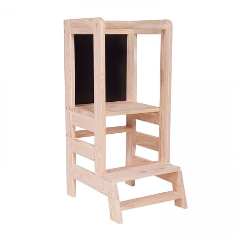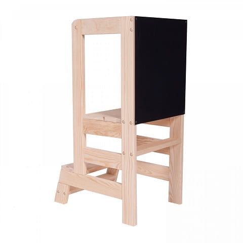 Kitchen Helper z płytą tablicową do malowania kredą to podest umożliwiający dziecku uczestniczenie w czynnościach związanych z przygotowywaniem posiłków. Zwykle dzieci mają ograniczony dostęp do blatu kuchennego, zlewu, czy stołu. Z pomocnikiem kuchennym, dziecko może nie tylko obserwować kolejne etapy przygotowywania potraw, ale także brać czynny udział w przyrządzaniu dań, nakrywaniu do stołu, czy w zmywaniu naczyń. Konstrukcja pomocnika kuchennego jest stabilna oraz umożliwia regulowanie wysokości podestu i dostosowywanie go do wielkości dziecka, co ma bezpośredni wpływ na bezpieczeństwo pociechy i pozwala jej na samodzielne wejście i zejście z dostawki.
