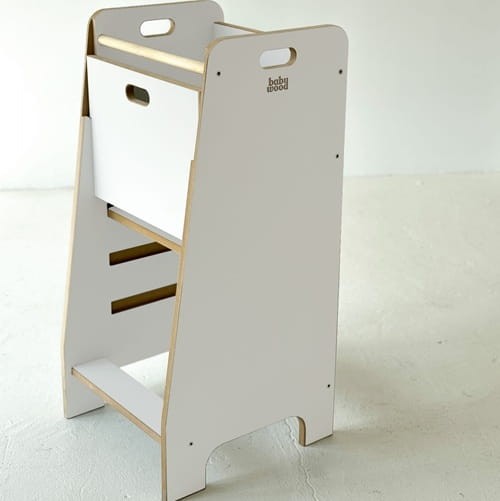 - Regulowany podest - kitchen helper posiada 3-stopniową regulację podestu, dzięki czemu będzie idealny zarówno dla kilkumiesięcznego, jaki i kilkuletniego Malucha. To produkt, który rośnie razem nim!