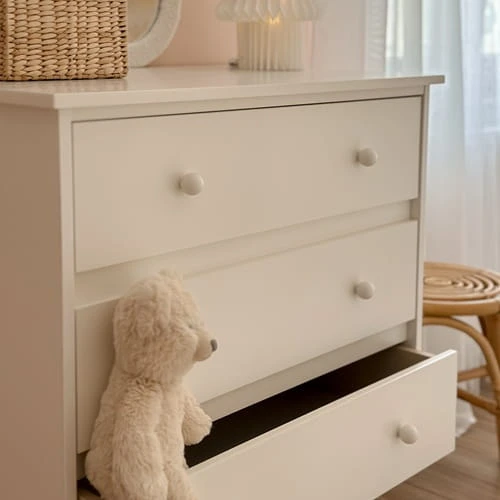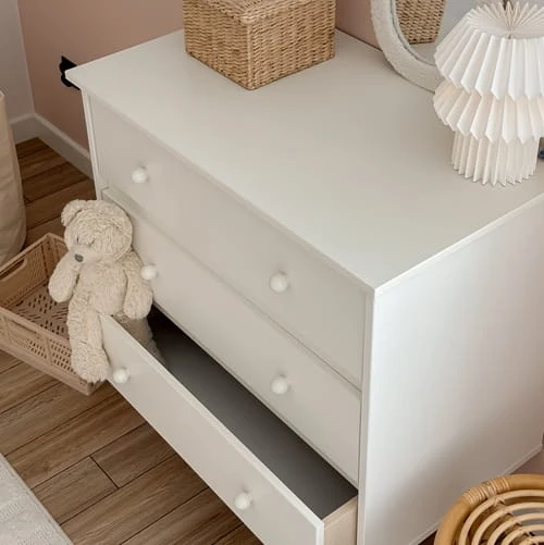 Komoda Babushka biała niska z 3 szufladami - dziecięca