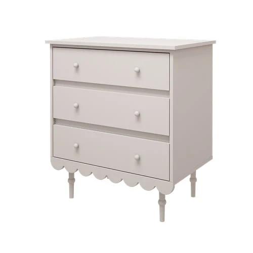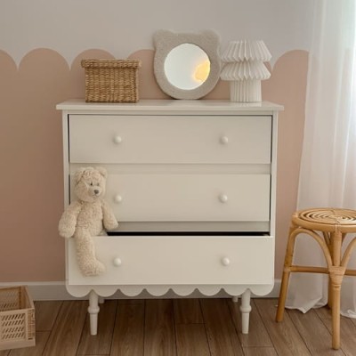 Niezwykle urokliwa komoda dziecięca w stylu retro w kolorze złamanej bieli. Posiada trzy praktyczne szuflady wyposażone są w wysokiej jakości prowadnice oraz zawiasy z samodomykiem. Komoda Babushka będzie się pięknie prezentowała w pokoju dziewczynki i chłopca.