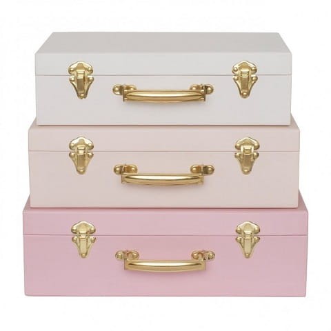 Uroczy zestaw trzech walizek Jabadabado w trzech rozmiarach, w pięknej pastelowo różowej kolorystyce w stylu vintage. Idealne na drobiazgi i skarby Twojego malucha, posłużą zarówno do zabawy oraz stanowią nietuzinkowy element wyposażenia dziecięcych dziewczęcych wnętrz.