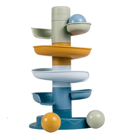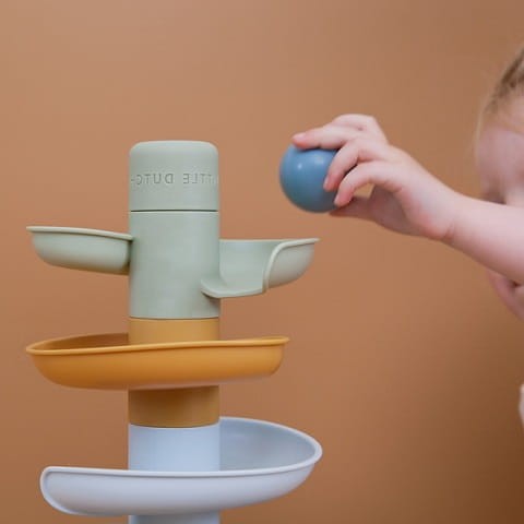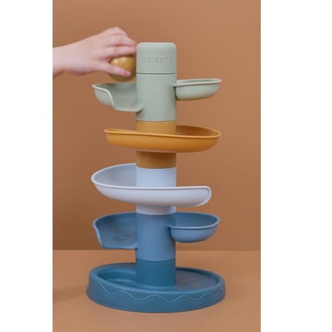 Kulodrom Blue od Little Dutch to spiralna wieża zapewniająca niekończącą się zabawę. Ten kolorowy zestaw składa się z pięciu subtelnie kolorowych części, które maluch może z łatwością układać jedna na drugiej.