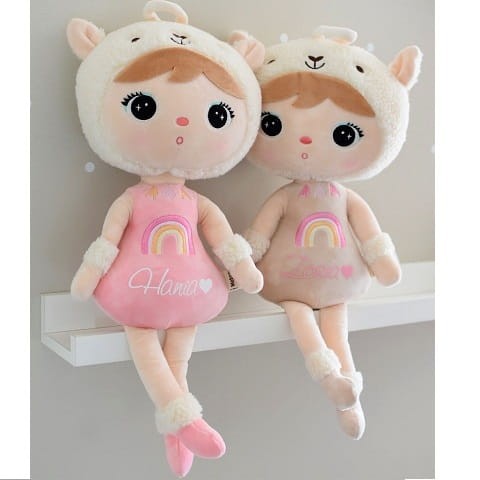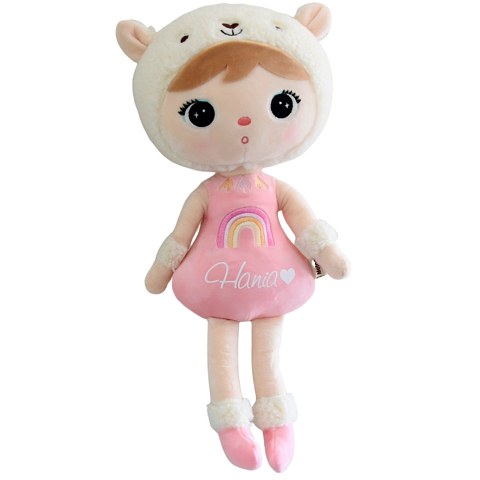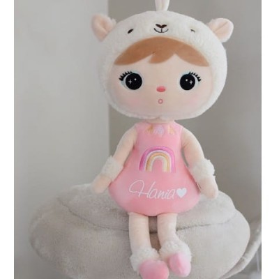 Lalka Metoo Alpaka różowa z imieniem. Długość lalki ok. 48 cm.