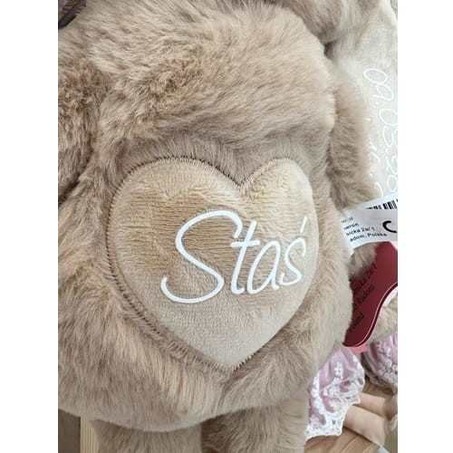 Imię na spersonalizowanej lalce wykonywane jest z folii odzieżowej, która posiada certyfikat OEKO-TEX Standard 100 a to znaczy, że bez obaw może być stosowana np. na ubrankach niemowlęcych i dziecięcych. Aby zamówić lalkę z imieniem należy przy składaniu zamówienia wpisać imię oraz wybrać kolor czcionki.