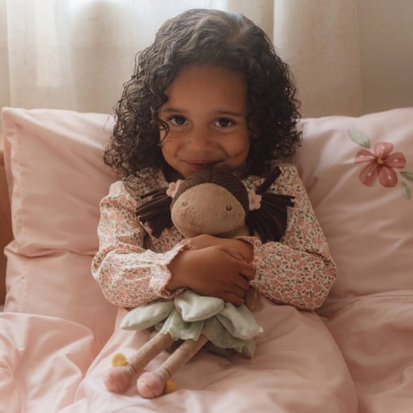 - Lalka jest leciutka, mięciutka i idealna do przytulania – cechy niezbędne dla zabawki, która towarzyszy dziecku na każdym kroku.