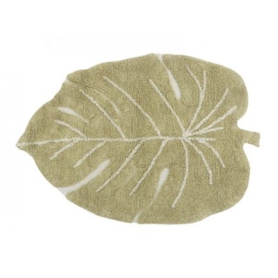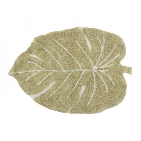 Piękny, mięciutki dywan do pokoju dziecięcego w delikatnym, oliwkowym odcieniu i kształcie liścia. Seria Mini Ones. Dywanik jest idealny do leżakowania i zabawy dla najmłodszych.