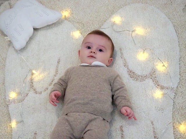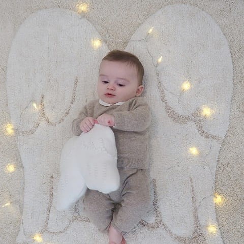 Piękny, mięciutki dywan do pokoju dziecięcego w delikatnym odcieniu i kształcie skrzydeł Anioła. Seria Mini Ones. Dywanik jest idealny do leżakowania i zabawy dla najmłodszych.