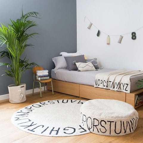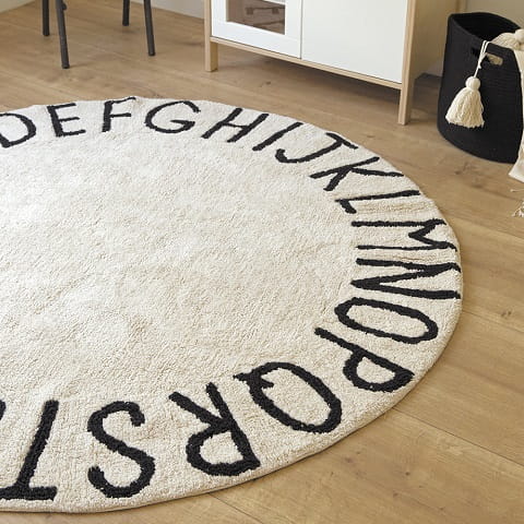 Od A do Z… Dzięki kolekcji Round ABC będziesz mieć wiele sposobów na udekorowanie pokoju dziecięcego nowoczesnym i eleganckim stylem! W 100% bawełniana, okrągła, nadająca się do prania w pralce (konwencjonalna pralka o pojemności 6 kg), jej wygląd i kolor są hitem wśród chłopców i dziewcząt, a alfabet wokół krawędzi sprawia, że ten dywan jest tak zabawny. Ponadto łatwo dopasowuje się do każdego rodzaju wystroju. Tylko naturalne barwniki są używane, aby był całkowicie bezpieczny, a ponieważ jest wykonany z bawełny, jest lekki, elastyczny i bardzo miękki.