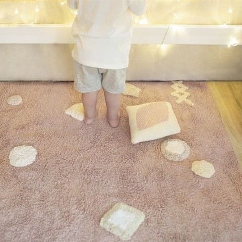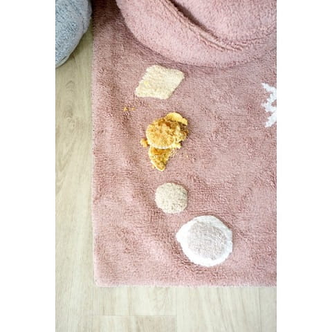 Ogromną zaletą dywanu jest możliwość prania go w zwykłej pralce w temp. 30 stopni, dzięki temu może być zawsze czysty i świeży. Każdy dywanik Lorena Canals wytwarzany jest ręcznie, co oznacza, że nie ma dwóch identycznych dywanów. Możliwe są drobne różnice w kolorze i kształcie. Wyprodukowany w 97% z naturalnej bawełny i nietoksycznych barwników.