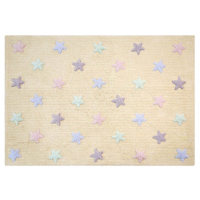 Dywan do prania w pralce, 100% naturalna bawełna. Dywan w kolorze waniliowym z kolorowymi gwiazdkami.