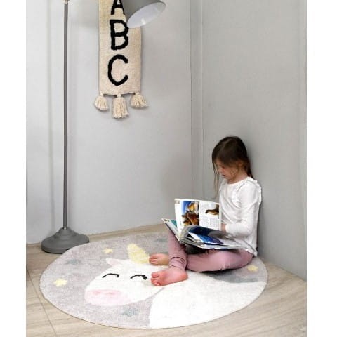 Piękny, mięciutki dywan do pokoju dziecięcego w delikatnych, pastelowych odcieniach. Ten uroczy jednorożec to prawdziwy symbol wiary w siebie, zachęca dzieci do realizacji marzeń. Okrągły dywan w delikatnych pastelowych odcieniach, idealny do dekoracji pokoi dziecięcych jako centralny element lub jako mata do zabawy. Można go prać w pralce o pojemności 6kg. Ręcznie wykonany z naturalnej bawełny organicznej z nietoksycznymi barwnikami, stanowi słodki i przytulny akcent na obszarach zabaw dla dzieci.