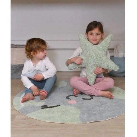 Piękny, mięciutki dywan do pokoju dziecięcego w niebieskim odcieniu. Ten przyjazny dywan w kształcie ziemi jest uroczym przypomnieniem, że musimy dbać o planetę. Idealny do dekoracji pokoi dziecięcych a dodatkowo można go prać w pralce! Dbaj o czystość i bezpieczeństwo w otoczeniu dzieci dzięki naszym dywanom! Ręcznie wykonany z naturalnej bawełny organicznej i nietoksycznych barwników. Idealny do pralki o pojemności 6kg.