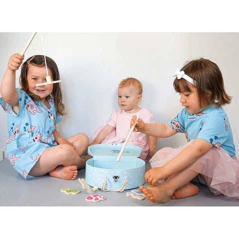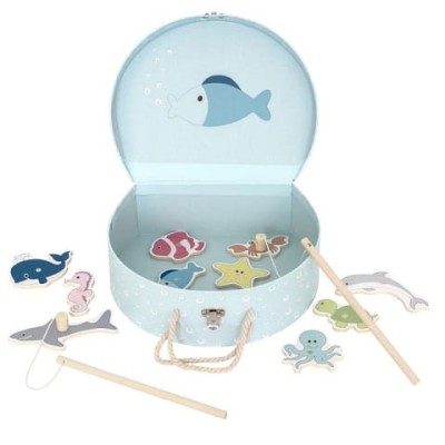 Rybki do łowienia to świetna gra zręcznościowa, w zestawie dwie wędki, kolorowe rybki i morskie stworki, oraz śliczne pudełeczko akwen do łowienia i przechowywania gry. Drewniana gra "Łowimy rybki" to wspaniała zabawa, która będzie długo towarzyszyła dziecku. Początkujący gracze łowią rybki za pomocą wędki, której uchwyt jest zakończony magnesem.