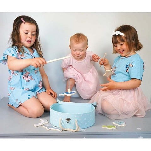 Łowienie rybek to ulubiona gra każdego przedszkolaka. W stawie rybnym znajduje się kilka uroczych małych rybek i zwierzątek morskich, które można złapać za pomocą wędki. Ten, kto złapie najwięcej rybek, ten wygrywa! Każda wędka ma magnes, podobnie jak każde zwierzątko morskie.