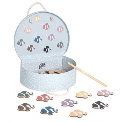 Rybki do łowienia to świetna gra zręcznościowa, w zestawie dwadzieścia rybek w identycznym kształcie w różnym kolorze oraz jedna wędka, oraz śliczne pudełeczko akwen do łowienia i przechowywania gry.