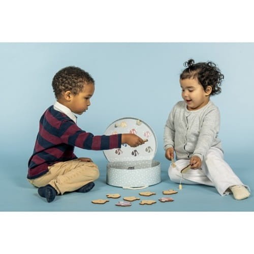 Łowienie rybek to ulubiona gra każdego przedszkolaka. W stawie rybnym znajduje się kilka uroczych małych rybek, które można złapać za pomocą wędki. Ten, kto złapie najwięcej rybek, ten wygrywa! Każda wędka ma magnes, podobnie jak każde zwierzątko morskie.