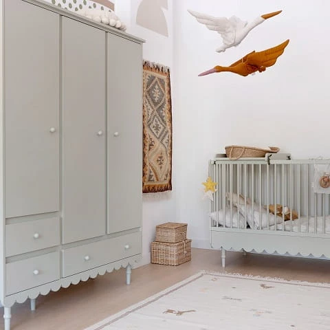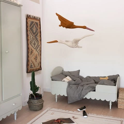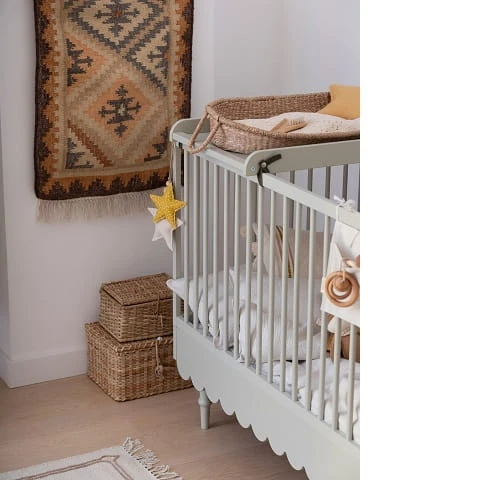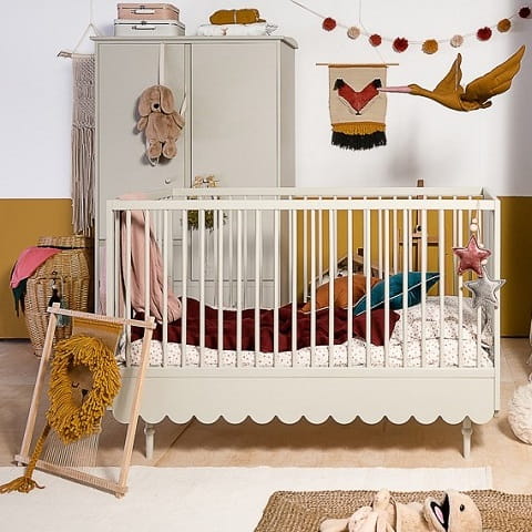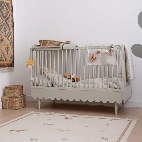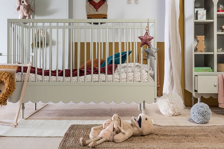 Niezwykle urokliwe łóżko / łóżeczko dziecięce w stylu retro w kolorze oliwki. Łóżeczko dziecięce z opcją tapczanika, gdy już maluszek podrośnie. Posiada 3 poziomy regulacji materaca, dodatkowo jedna z ramek bocznych posiada 3 wyjmowane szczebelki aby umożliwić już starszemu dziecku samodzielne wychodzenie z łóżeczka. Łóżeczko 70 x 140 cm wyposażone jest w dodatkowe elementy, które umożliwiają konwersję na łóżeczko dla starszego dziecka. Zabezpieczają one również dziecko przed wypadaniem. Do łóżeczka pasuje materac o wymiarach 70×140 cm.