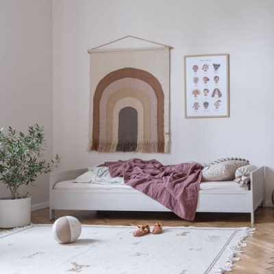 Do łóżka pasuje materac o wymiarach 90 x 200 cm. Zalecana wysokość materaca to 18-20 cm. Kolor: kaszmir (ciepły szaro-beżowy kolor).