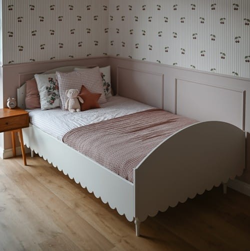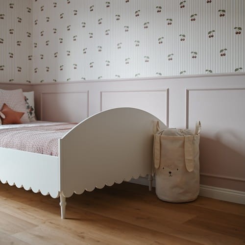Niezwykle urokliwe łóżko dziecięce w stylu retro w kolorze złamanej bieli. Do łóżka pasuje materac o wymiarach 120×200 cm. Rozmiar zapewnia komfort spania dla dziecka i nie tylko. Maksymalna wysokość materaca to 23cm. Łóżko nie zawiera materaca - do kupienia osobno.