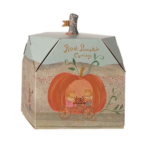 Karoca dynia dla myszek Maileg z kolekcji 2025. Karoca w kształcie dyni z bajki o kopciuszku teraz w wersji dla myszek Maileg. Piękny powóz dla mysiej rodziny królewskiej na metalowych kołach. Idealne pasuje do myszki księżniczki i księcia. Karoca zapakowana jest w piękne pudełko prezentowe.