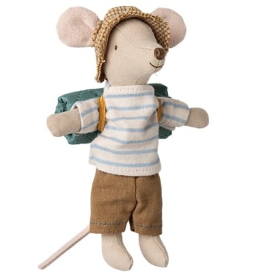 Maileg Myszka wędrowna Starszy Brat podróżnik ze śpiworkiem i kapeluszem