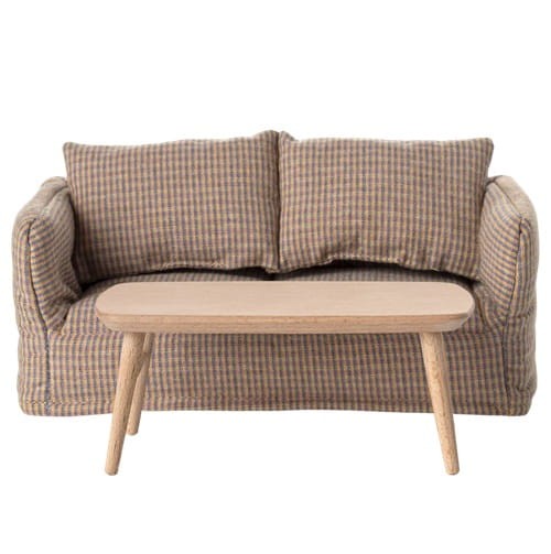 Drewniany stolik kawowy dla myszek Maileg z kolekcji 2025. Ten piękny stolik kawowy idealnie pasuje do sof dla myszek. Ten stolik można wykorzystać w Mouse Hole Farmhouse i z pewnością będzie idealnym miejscem na przytulne spotkania przy herbacie lub kawie.