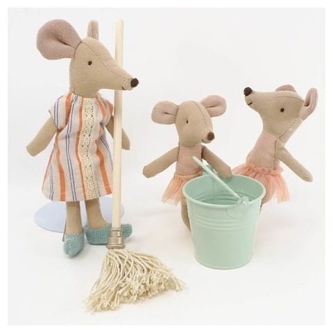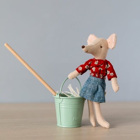 Wiaderko z mopem to idealny zestaw do sprzątania dla króliczków i myszek Maileg. W zestawie: metalowe wiaderko w pięknym, miętowym odcieniu i mop do sprzątania z drewnianą rączką. Świetnie sprawdzi się podczas zabaw z myszkami Maileg jako wyposażenie domu dla lalek. Wspaniały prezent dla dzieci od 3 roku życia.