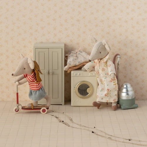 Maileg to świat, w którym małe myszki księżniczki są idealnymi towarzyszkami podwieczorku. To świat, w którym koty i myszy są przyjaciółmi. Nasz to świat dziecięcej wyobraźni - i to jest świat, który cenimy. Myszki można dowolnie kompletować, tak aby stworzyć całą mysią rodzinkę.